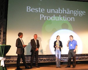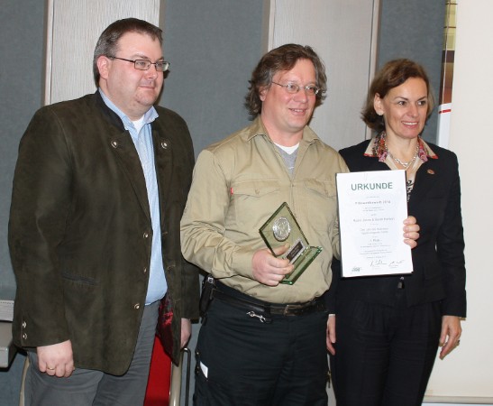 Preisverleihung in Dortmund: Übergeben wurde er von Maik Scheele, dem Vorsitzenden der Jury und Sabine Loos, Hauptgeschäftsführerin der Messe Westfalenhallen Dortmund GmbH an Natzurfilmer Robin Jähne