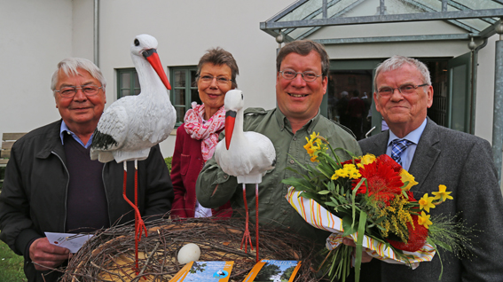 Der Preis ging zu gleichen Teilen an den Elbrinxer Storchenverein, der hervorragende Arbeit leistet, und an die Tierfilmer Sarah Herbort (nicht im Bild) und Robin Jähne. Rechts der Vorsitzende des Lippischen Heimatbundes, Friedrich Brakemeier und in der Mitte Brigitte Scheuer. Fotos: Thorben Gocke |