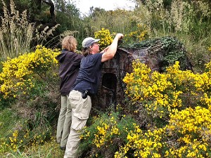 Für die Mönchsgeier am Futterplatz wird hier ein Tarnzelt aufgebaut.