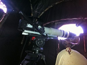 | | Dann hieß es tagelang still sitzen - da kriechen sogar die Schnecken am Filmer hoch